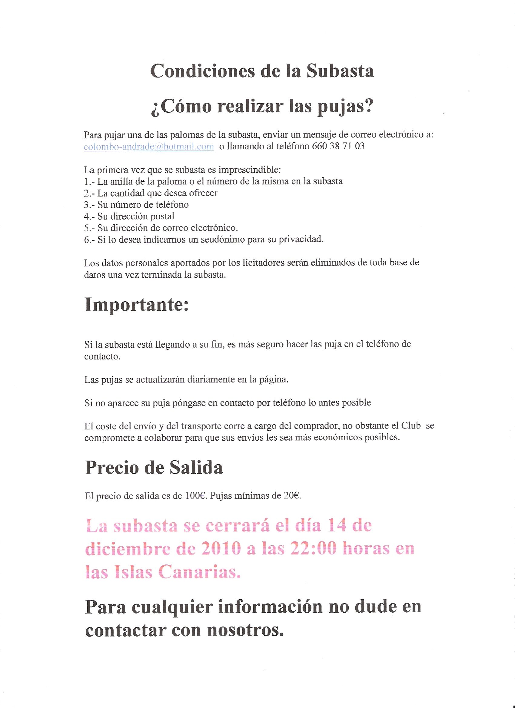 La subasta se cerrará el 14 de diciembre de 2010 a las 22:00 horas en las Islas Canarias.